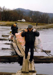 運転手のボローニャ(ウクライナ・ドネツク) 私がエベネゼルでの奉仕をはじめたのは1997年ニコライフというウクライナの私の故郷の 町においてでした。私は運転手として、ユダヤ人団体に人道的援助物資を運ぶために国中を車 でまわっていました。西部にあるターノピルという町でのことです。私たちはいつものように 神様が守ってくださるよう出発の前に祈りました。夜になって、森林地帯を運転していた時の ことです。 一台の車が私たちを追い越して道路の真中で止まったので、私も急ブレーキを踏んで車を止め ました。すると男たちは手に長いナイフを持って車から出てきました。強盗だったのです。彼 らはだんだん私に近づいてきました。私たちは激しく祈りました。